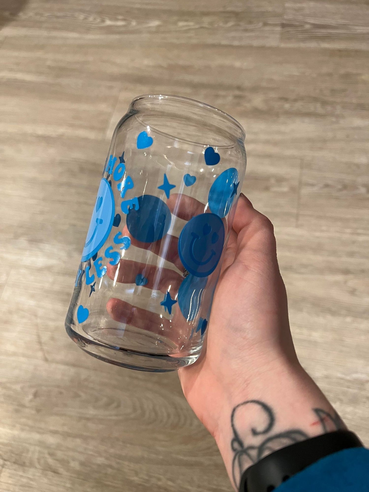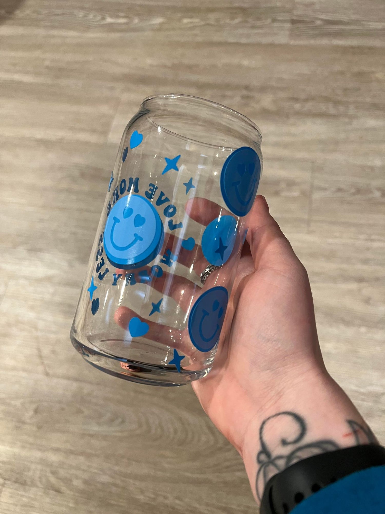 • Love More Worry Less Full Wrap Libbey Can Glass